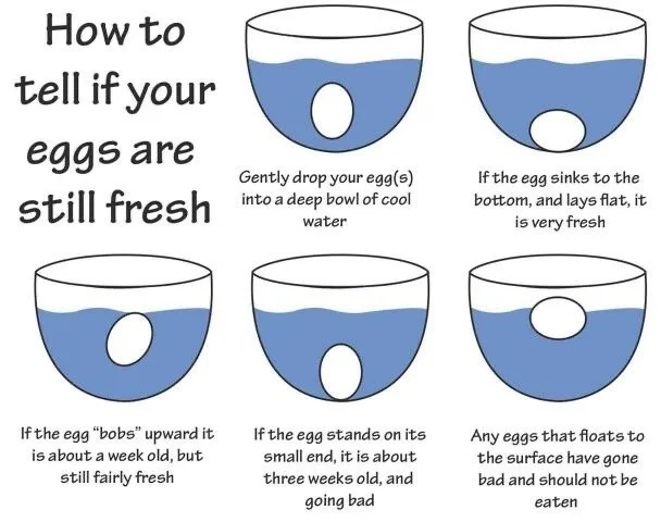 | Freshness | Indicated by small airspace, and unwrinkled top surface of yolk, and its height. Stale yolks flop at edges and as an egg ages the white becomes more runny. |
